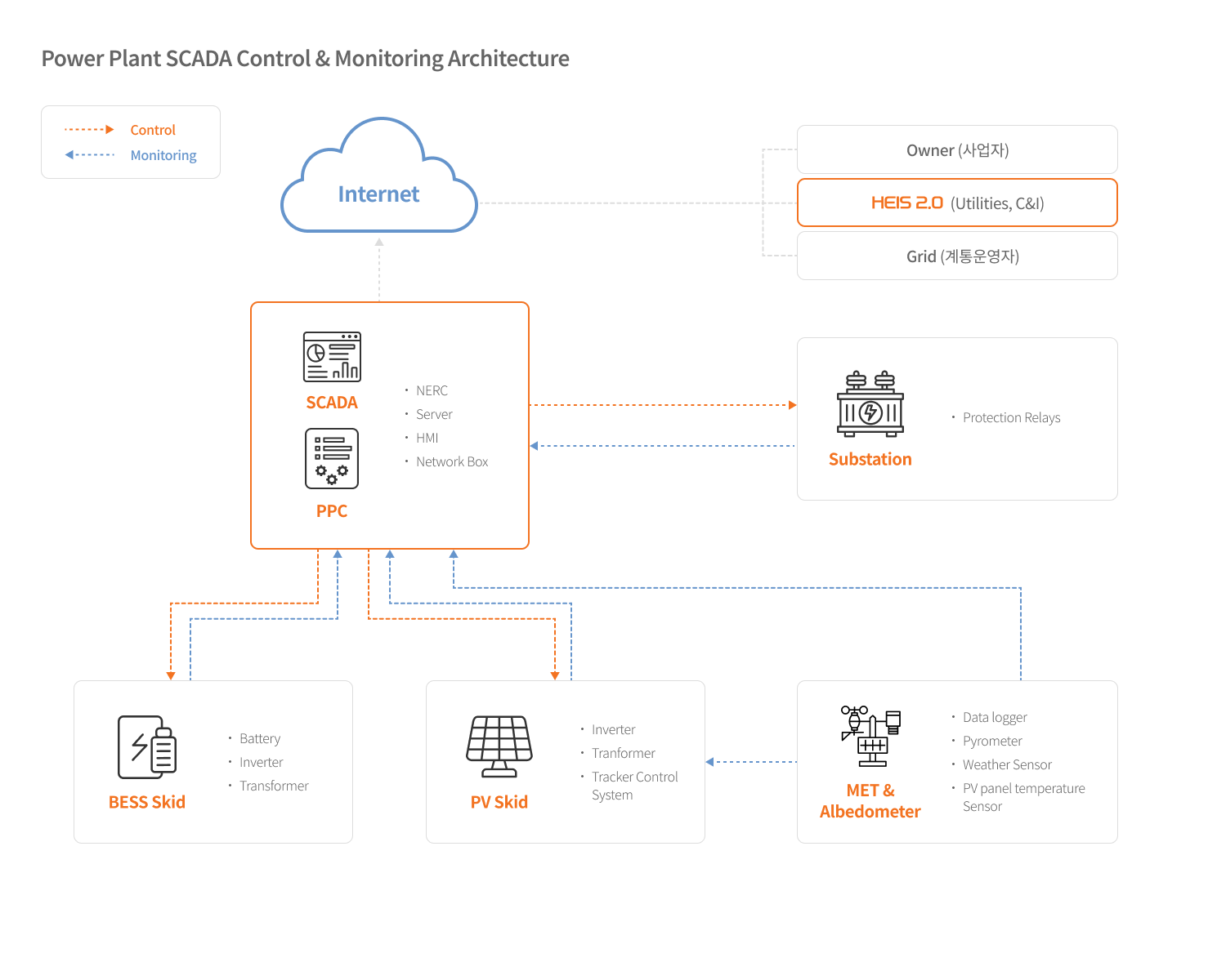 1.5GW 규모 대형(Utility-Scale) 태양광 발전소에서 개별 SCADA는 모니터링 및 주요 파라미터