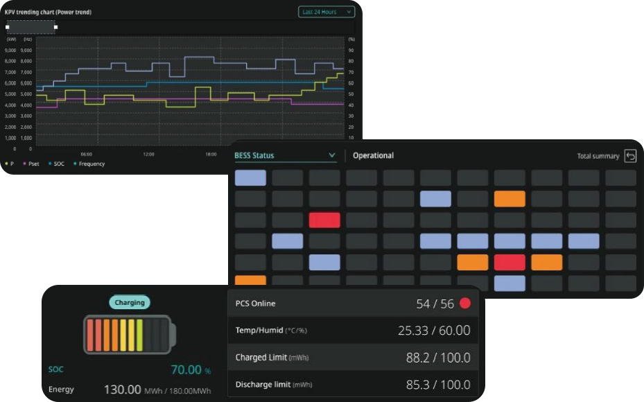 전령망 규정 준수와 효율적인 발전소 제어를 위해 주요 파라미터를 신속하게 관리합니다.
