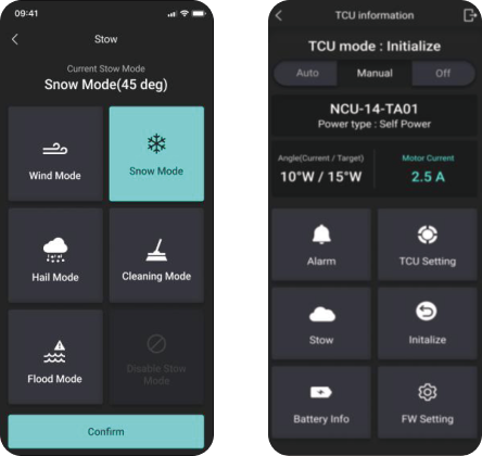*Stow mode : 우박, 폭설 등 악천후 시 패널 손상을 최소화하기 위한 메커니즘